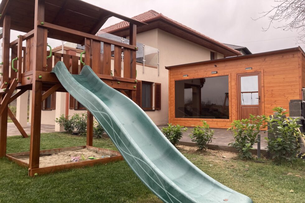 2024 decemberében elkészült szaunaházunk is: 6-8 fős finn szauna pihenővel, zuhanyzóval, integrált bluetooth audió rendszerrel, hangulat fényekkel.